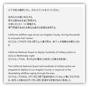 今回は、生成AIによるポストエディットがどのようなものであるか、具体的に見ていきましょう。